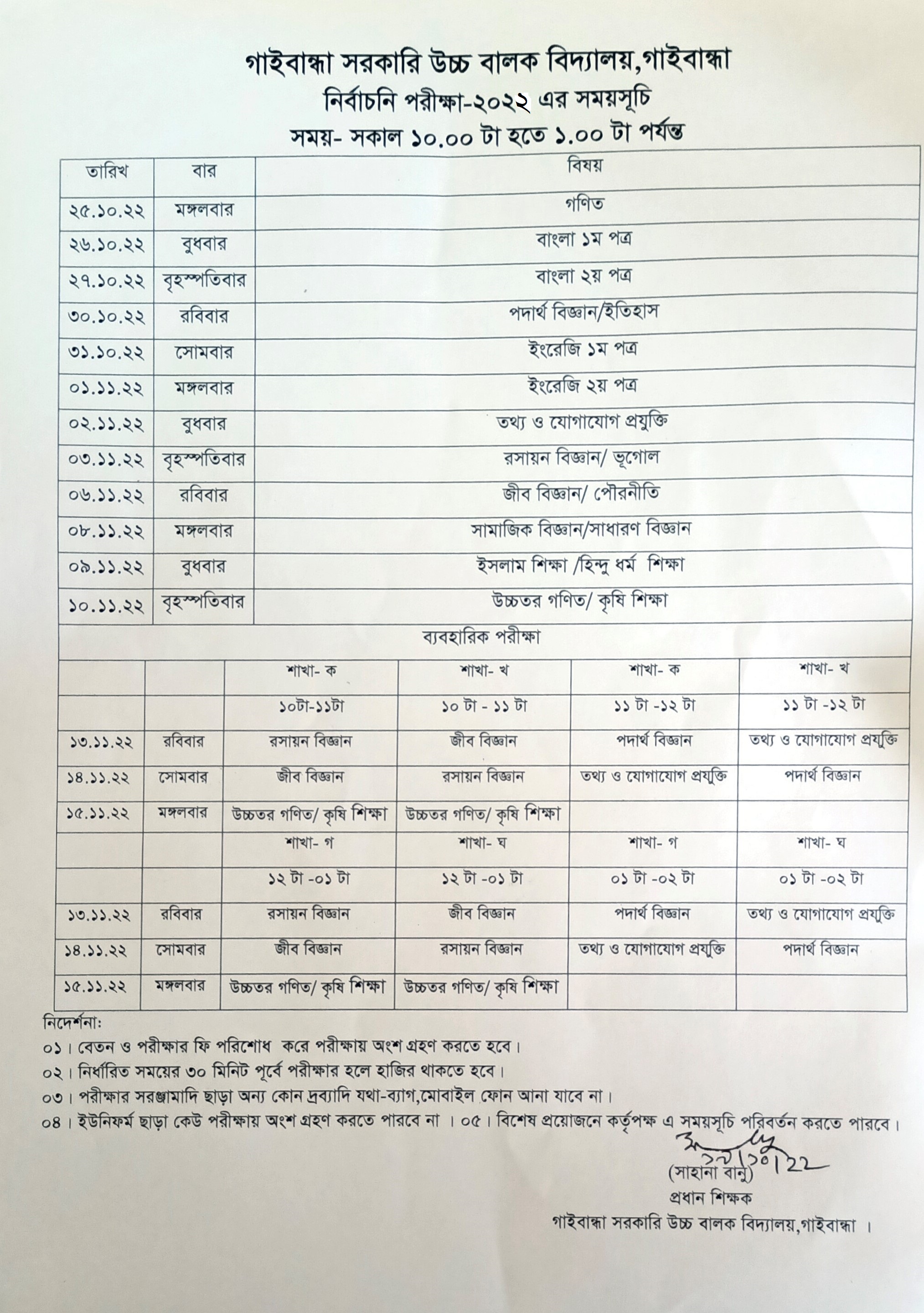 রুটিন-১ম সাময়িক পরীক্ষা/২০২২