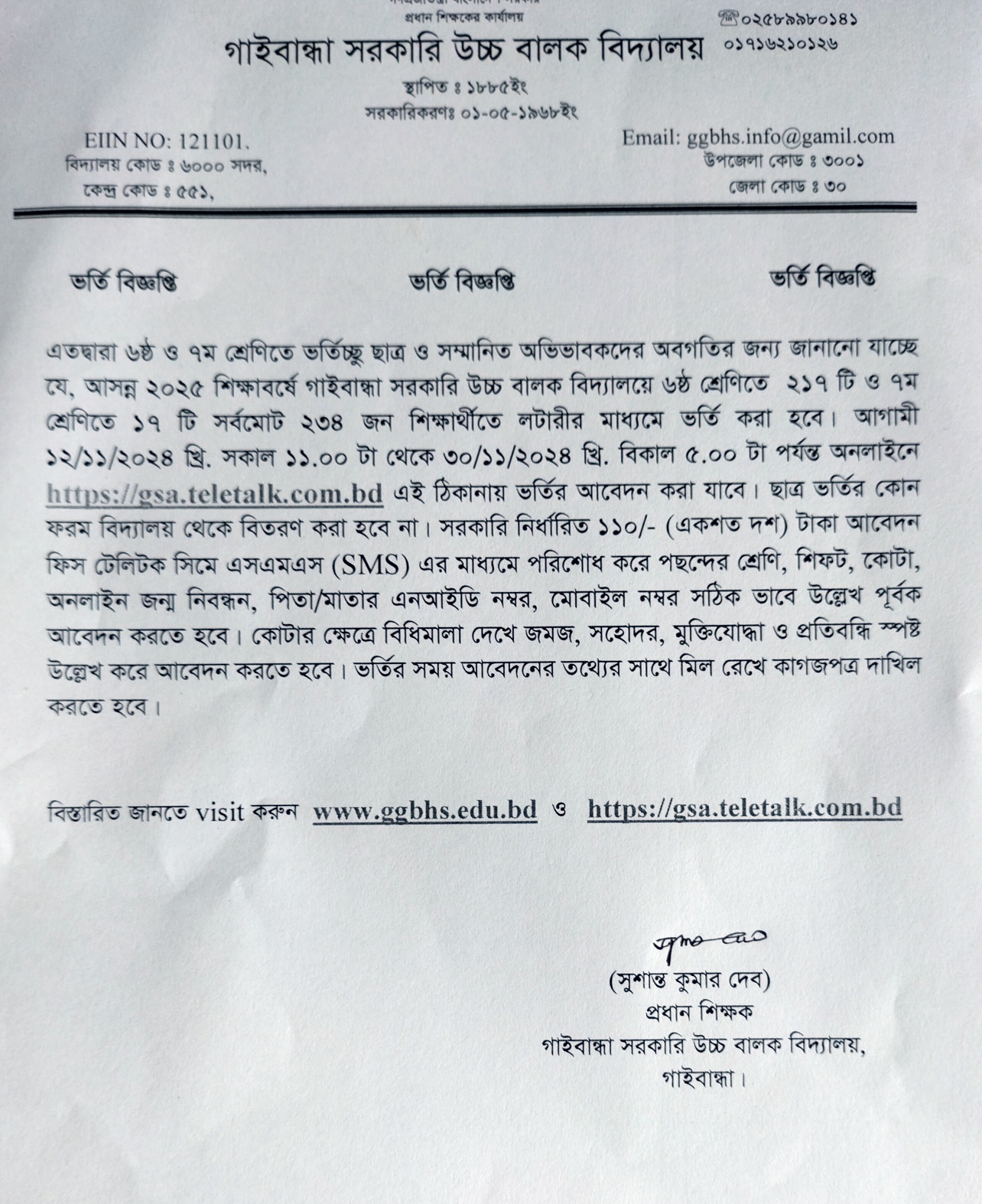 ভর্তি বিজ্ঞপ্তি-২০২৫