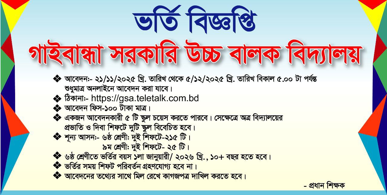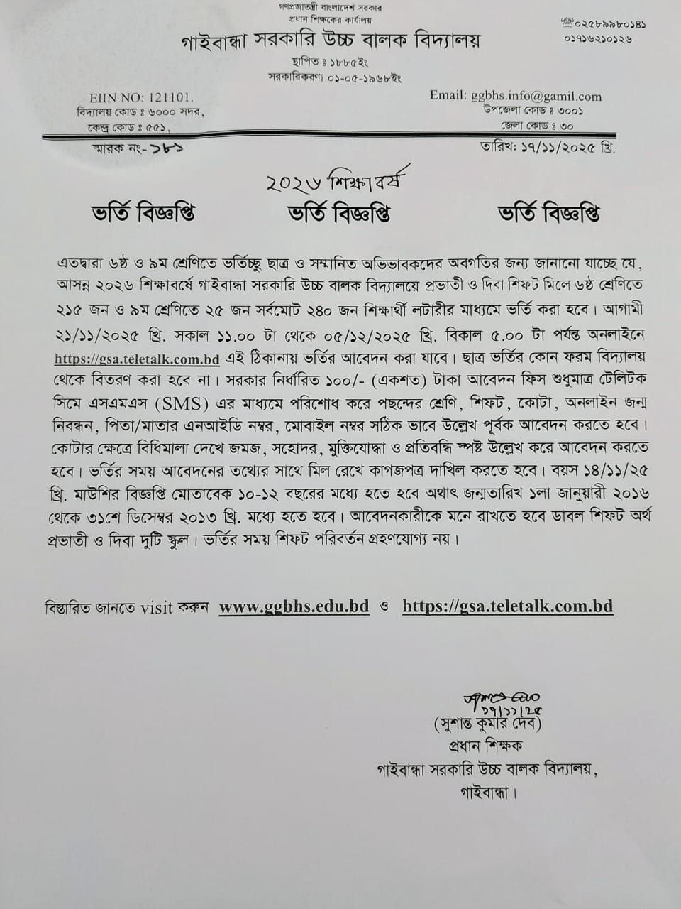 ভর্তি বিজ্ঞপ্তি-২০২৬